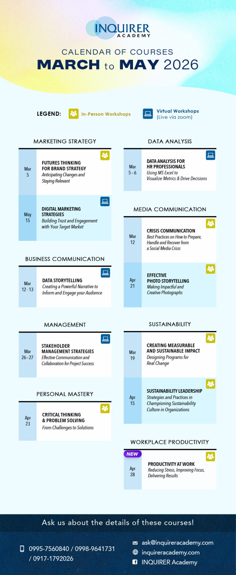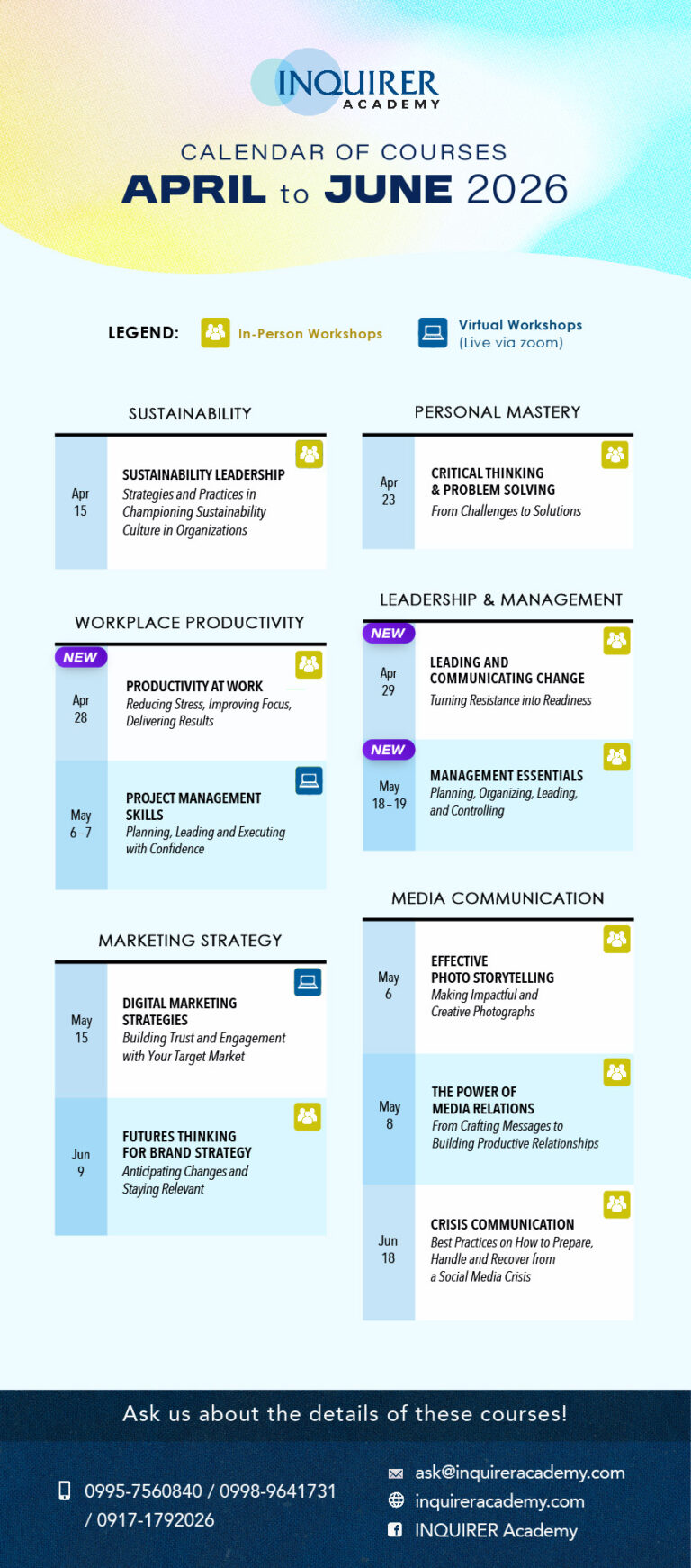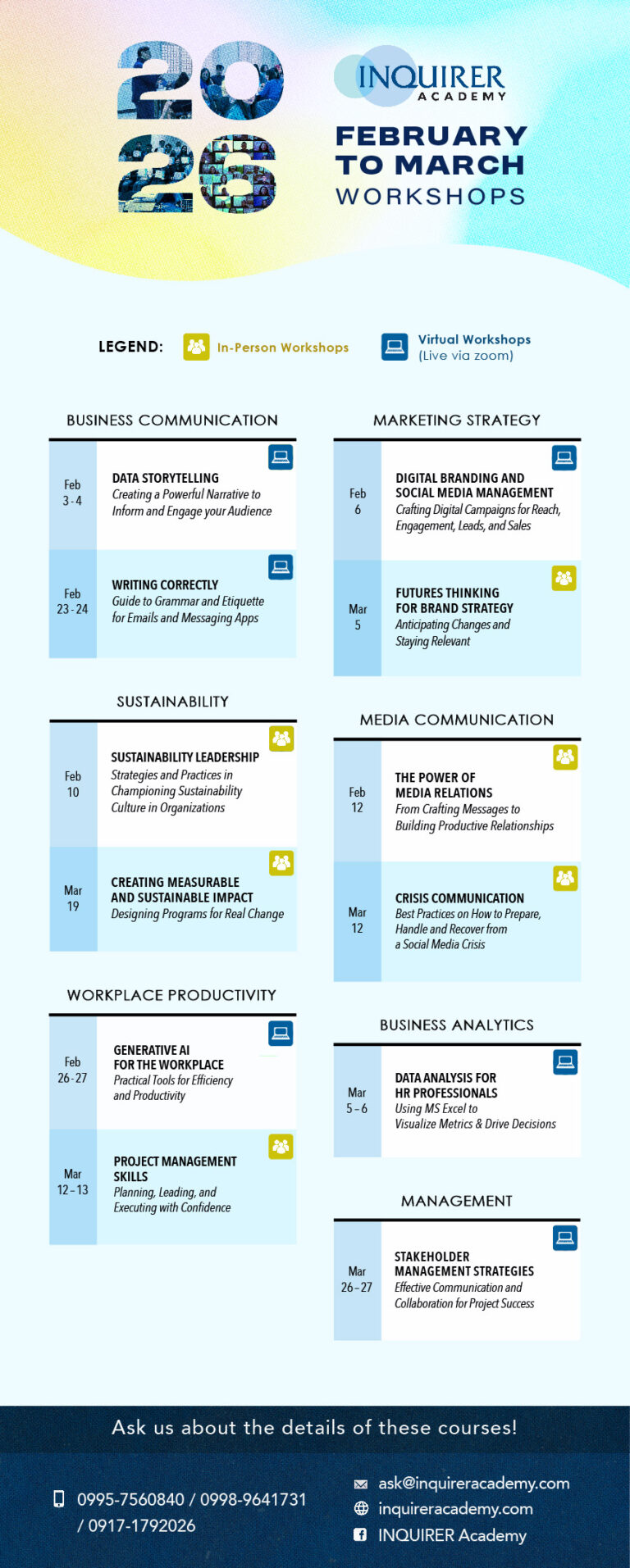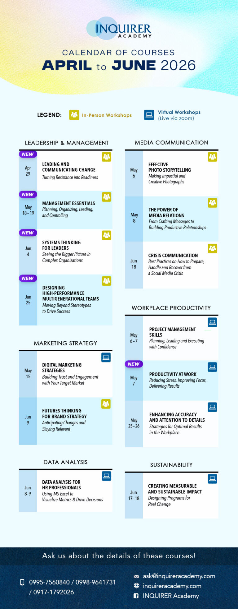 SCHEDULE OF IN-PERSON & VIRTUAL WORKSHOPS